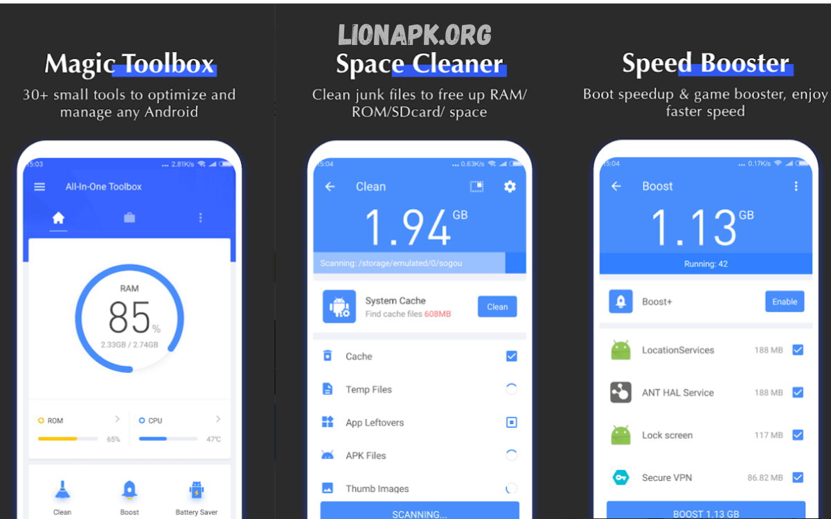 Key Features: Cache clearing, app management, automated cleaning, and performance monitoring.